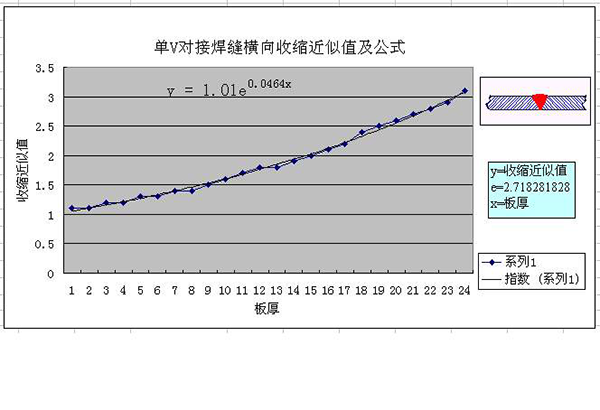 1、單V對(duì)接焊縫橫向收縮近似值及公式: