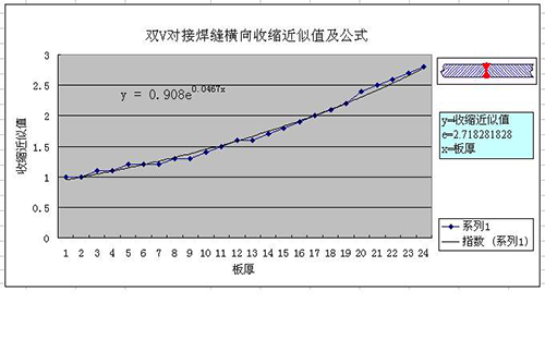 2、script id=text173432>雙V對(duì)接焊縫橫向收縮近似值及公式: