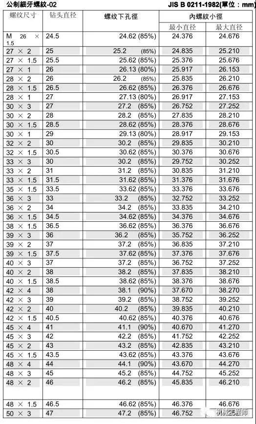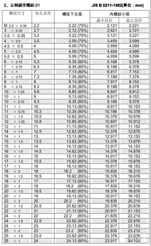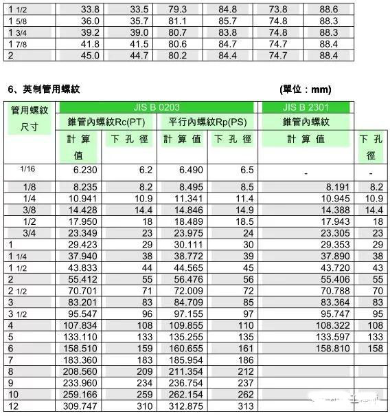 絲錐和鉆頭的參數對照表--隔熱管托_滄州五森管道有限公司