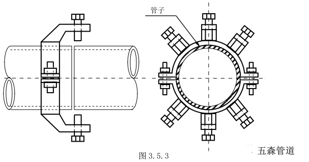 a)對(duì)于DN100以下的管子可直接進(jìn)行焊口組對(duì),DN150以上的管子應(yīng)使用卡具組對(duì),對(duì)接焊口可用圖3.5.3所示卡具。