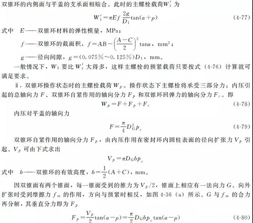 ② 雙錐密封 根據(jù)雙錐環(huán)的密封原理計算出預(yù)緊狀態(tài)下主螺栓載荷Wa 和操作狀態(tài)下主螺栓載荷Wp ,并根據(jù)Wa 、Wp 進行主螺栓設(shè)計。