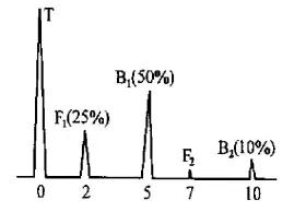 在原始狀態(tài)下,用蘸水的濕布觸摸人工缺陷,此時波幅變化情況如圖2所示。可見,降至滿幅的75%(-l.6dB), F1 降至滿幅的27%(-0.9dB);B2降至滿幅的30%(-4.4dB), F2降至滿幅的14%(-1.7dB)。在此情況下,管路補(bǔ)償接頭通波及缺陷波較原始狀態(tài)均有所下降,說明這是能量衰減所致。