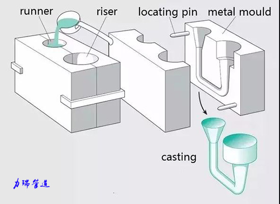 金屬型鑄造:指液態(tài)金屬在重力作用下充填金屬鑄型并在型中冷卻凝固而獲得鑄件的一種成型方法。