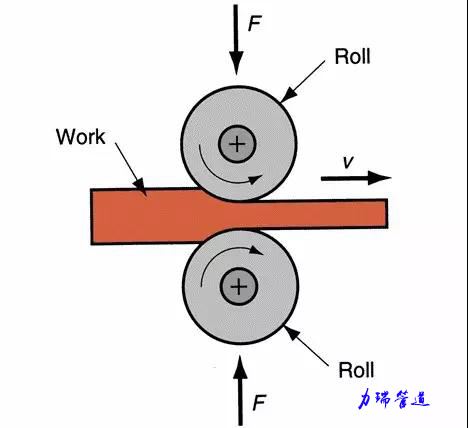 軋制:將金屬坯料通過一對旋轉(zhuǎn)軋輥的間隙(各種形狀),因受軋輥的壓縮成型軋制使材料截面減小,長度增加的壓力加工方法。