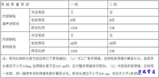 1 .一級焊縫應進行100%的檢驗,其合格等級應為現行國家標準《鋼焊縫手工超聲波探傷方法及質量分級法》(GB 11345)B 級檢驗的Ⅱ級及Ⅱ級以上;