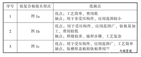 表1 常見鈦復合板接頭形式的優缺點