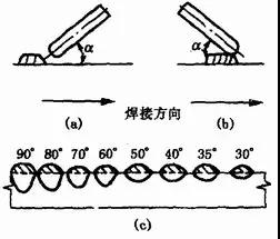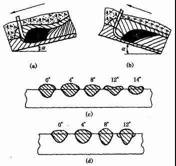 圖1—32 電極(焊絲)傾角對(duì)焊縫形狀的影響