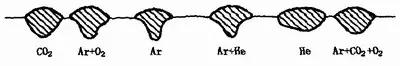 圖1—35 保護(hù)氣體成分對(duì)焊縫形狀的影響