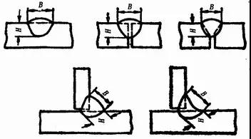 熔焊時(shí),在單道焊縫橫截面上焊縫寬度(B)與焊縫計(jì)算厚度(H)的比值(ф=B/H),叫焊縫成形系數(shù),見(jiàn)圖1—21。該系數(shù)值小,則表示焊縫窄而深,這樣的焊縫中容易產(chǎn)生氣孔和裂紋,所以焊縫成形系數(shù)應(yīng)該保持一定的數(shù)值,例如埋弧自動(dòng)焊的焊縫成形系數(shù)ф要大于1.3。