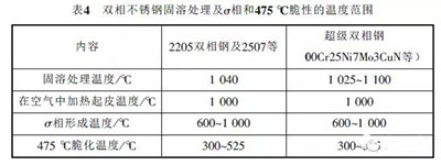 (5)雙相不銹鋼含有50%的鐵素體,同樣也存在475℃脆性,但不如鐵素體不銹鋼那樣敏感;