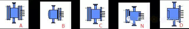 J型殼體:分流殼體,一是適用于殼體氣相壓降較大,振動(dòng)解決不了的情況;二是用于再沸器,相對(duì)于E型使得傳熱的效果比較穩(wěn)定;三是用于部分冷凝的工況,其缺點(diǎn)則是傳熱溫差較小,傳熱系數(shù)也不大。