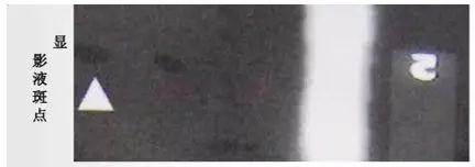 由顯現(xiàn)液產(chǎn)生的斑點(diǎn)同樣表征為一些小圓點(diǎn),但是其黑度較周圍膠片區(qū)域的黑度高。