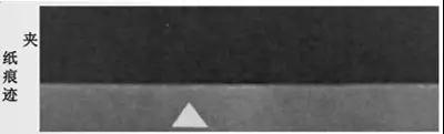 如果膠片和鉛箔增感屏之間存在一張紙,并產(chǎn)生了投影,則會出現(xiàn)夾紙痕跡。