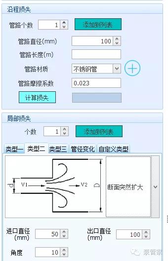 可利用現(xiàn)有軟件, 計(jì)算出管路沿程損失和管路局部損失, 如義維開發(fā)的的選型軟件系統(tǒng), 以方便計(jì)算。