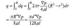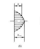 由式可知管內(nèi)流速u沿半徑方向按拋物線規(guī)律分布,最大流速在軸線上,其值為: