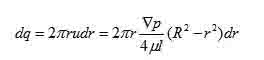 圖(b)所示拋物體體積,是液體單位時(shí)間內(nèi)流過通流截面的體積即流量。為計(jì)算其體積,可在半徑為r處取一層厚度為dr的微小圓環(huán)面積,通過此環(huán)形面積的流量為: