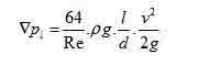 在實(shí)際計(jì)算壓力損失時(shí),為了簡化計(jì)算,得μ=υdρ/Re,并把μ=υdρ/Re代入,且分子分母同乘以2g得: