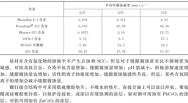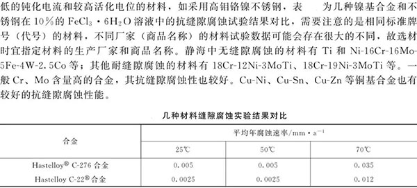 縫隙無法避免時,選用耐縫隙腐蝕的材料。選用在低氧酸性介質中不活化并具有盡可能