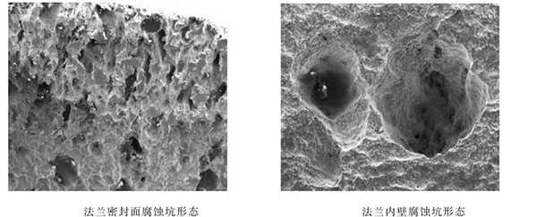 縫隙腐蝕在多數情況下是宏觀電池腐蝕,腐蝕形態從金屬縫隙內金屬的點蝕、晶間腐蝕、 SCC 、腐蝕疲勞到全面腐蝕都有,一般說來,耐蝕性好的材料易出現點蝕等局部腐蝕,而耐蝕性差的易出現活化態全面腐蝕。縫隙內酸化嚴重時,以全面腐蝕為主,酸化較弱時,易出現局部腐蝕,??p隙或沉積物的存在往往會促進不銹鋼的點蝕,發生縫隙腐蝕時,縫隙內部一般出現加速腐蝕,而縫隙外部則腐蝕較輕。但銅及銅合金由于濃差引起的腐蝕位于接近縫隙的暴露表面處,而不是在縫隙內部,即縫隙口為陽極,而縫隙內部則可成為陰極,有時還可觀察到銅的沉積。垢下腐蝕,因閉塞區為酸性腐蝕,伴有氫氣產生,所以在沉積物表面會產生半球狀鼓包,垢下一般呈較大的腐蝕坑,嚴重的穿透壁厚,見圖  。與點蝕一樣,受重力影響,向上的表面腐蝕較豎直和向下的表面嚴重。