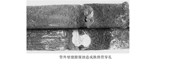 縫隙腐蝕不只限于不銹鋼,在包括鈦、鋁、銅和鎳基合金等許多合金系列中都會發生,如氯堿工業鈦設備常發生縫隙腐蝕。與點蝕所造成的危害一樣,縫隙腐蝕也會造成設備腐蝕穿透,物料泄漏。對于換熱器會造成列管穿孔,換熱器中的介質污染,換熱器溫度和壓力的失穩等,同樣造成設備失效和停車事故或環境污染以及威脅安全生產等,是管殼式換熱器的主要失效形式之一。如,核電站的蒸汽發生器管子發生損壞的一種重要形式是 “壓凹腐蝕”,它是由于蒸汽發生器的鎳基合金(如 Inconel600 )傳熱管與原先采用的碳鋼管板 (或支撐板)之間形成了環形縫隙,碳鋼管板在高溫水中發生縫隙腐蝕,比基體金屬大 1 倍左右的腐蝕產物擠壓傳熱管管壁而造成管徑減小,產生凹痕的現象。由于應力的作用,還易導致管子破裂,嚴重影響核電站的安全運行。