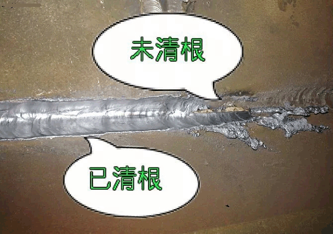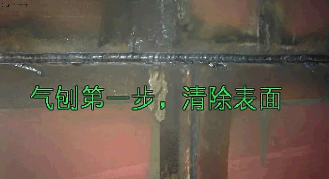 二、深度清理,仔細刨除加在焊縫中間的焊渣,氣孔。刨到焊縫成銀白色,無缺陷為止。