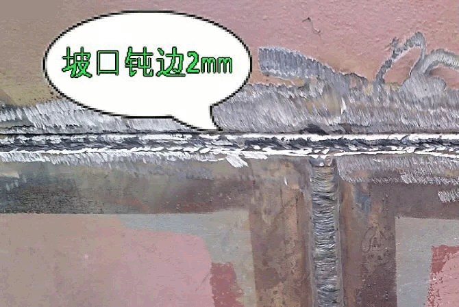 2、打底:打底使用連弧打底,根據(jù)板厚及坡口深度,焊條盡量燒焊坡口根部,使鐵水盡可能的透過鐵板,為使背后更容易的清根,打下基礎。焊條角度保持在75度至80度之間。使用多層多道焊接方法。每一道焊接完畢后,仔細用角磨機,清理焊道上下兩側。打底結束,坡口預留頓邊約2mm。