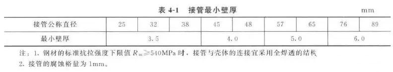 d. 接管最小壁厚滿足表4-1的要求。