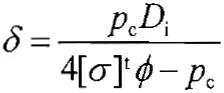 圓筒的中徑公式依據(jù)當量強度和失效準則有:,其中D=Di+δ,整理后得到大家經(jīng)常使用的公式:。