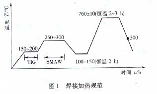 (3)焊后若來不及進行熱處理,則應立即進行脫氫處理,處理溫度為300-350℃,恒溫2h。