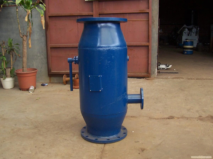 反沖洗除污器主要由優(yōu)質(zhì)碳鋼筒體,不銹鋼楔型濾網(wǎng),蝶閥和排污裝置所組成。當(dāng)過濾器工作時(shí),蝶閥處于開啟狀態(tài),水流自入口進(jìn)入過濾器,經(jīng)過濾網(wǎng)過濾后到出口,水中污物雜質(zhì)被濾網(wǎng)攔截。當(dāng)過濾器需要排污時(shí),關(guān)閉蝶閥。打開排污閥,水流經(jīng)過濾前半程過濾,一部分水流直接流人系統(tǒng),另一部分水流由濾網(wǎng)外側(cè)流入內(nèi)側(cè),經(jīng)排污口排出。起到反向自動沖洗濾網(wǎng)和排除污物雜質(zhì)的作用。整個反沖排污過程不用關(guān)閉系統(tǒng),實(shí)現(xiàn)了在線排污。